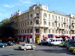 Здание гостиницы "Пассаж", одно из самых красивых зданий Одессы, поражающее изысканностью архитектуры и скульптурных композиций. Внутри гостиницы находится целая улица с рядами элитных магазинов. Высокая крыша из стекла дополняет ощущение необъятного простора и несет свет внутрь здания.